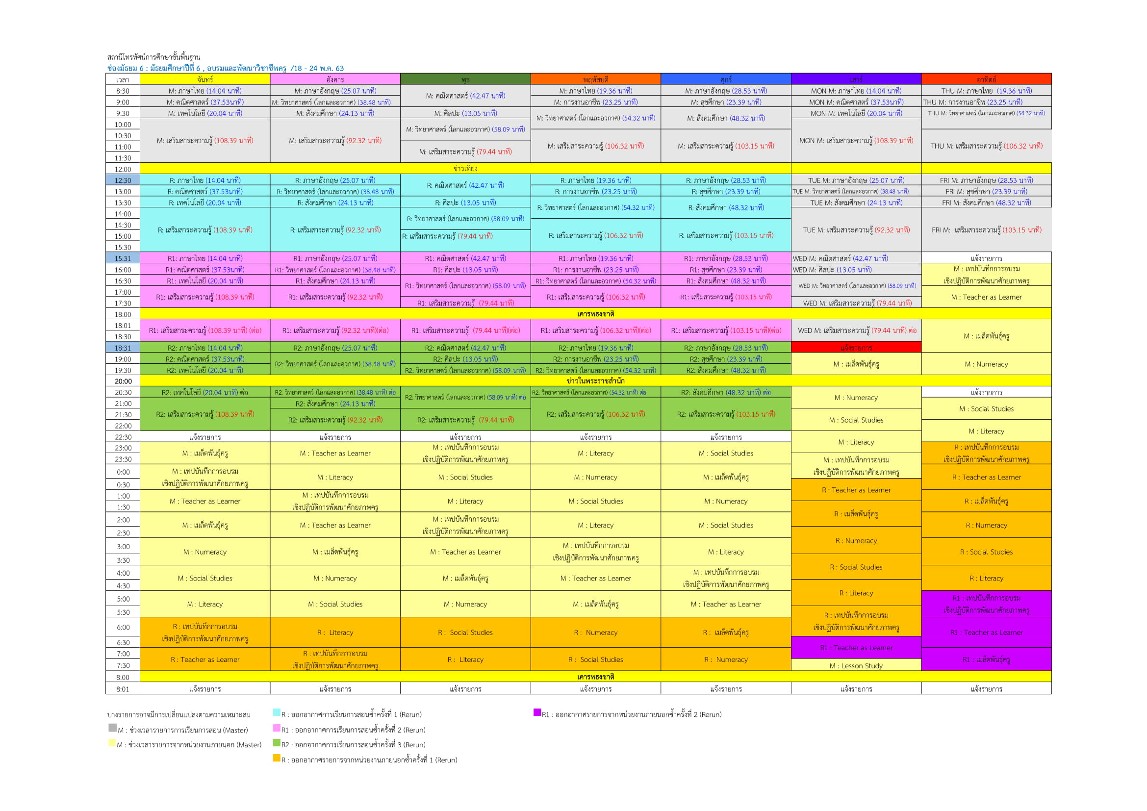 ม.6 สอนผ่านช่อง DLTV 15 ทีวิจิทัลช่อง 51 ทีวีดาวเทียม KU-Band (จานทึบ) ช่อง 200 ทีวีดาวเทียม C-Band (จานโปร่ง) ช่อง