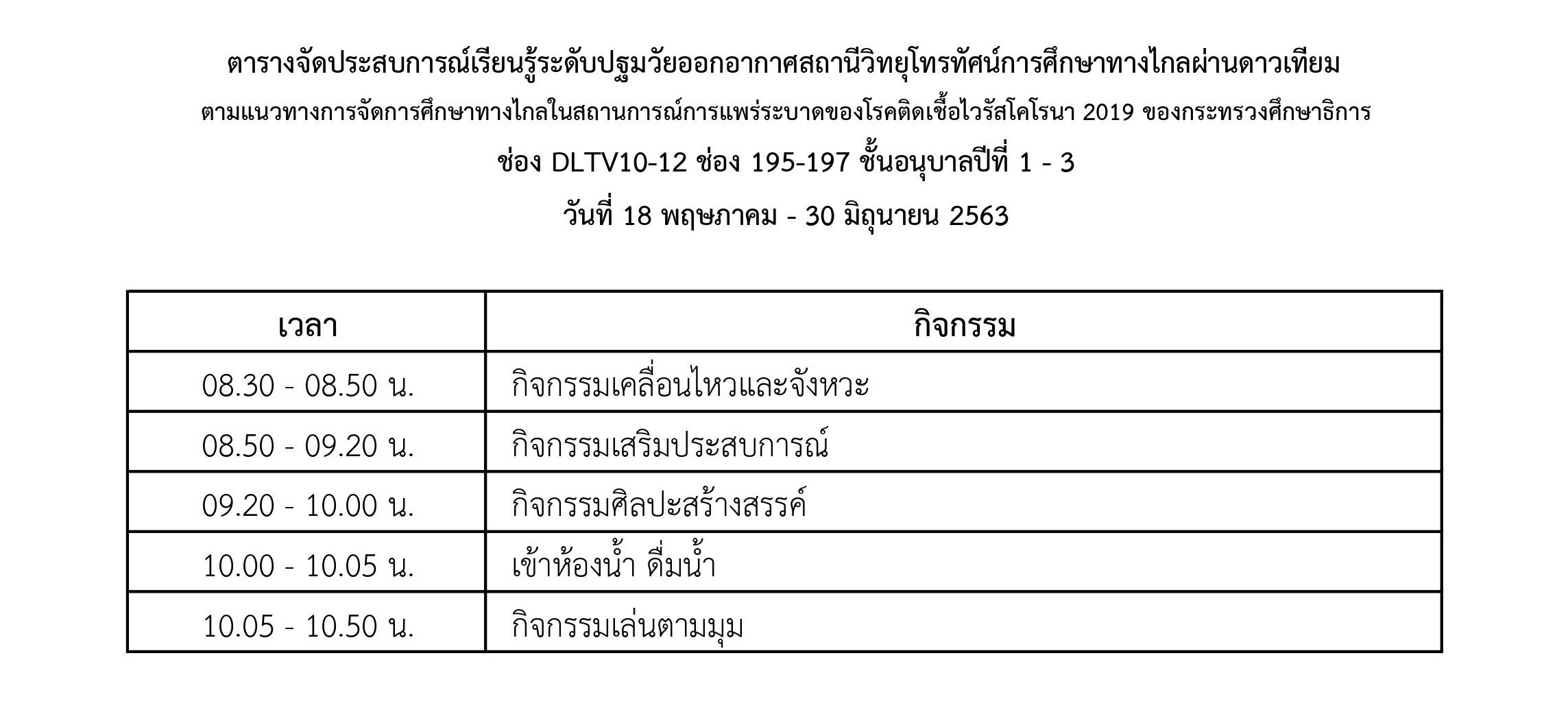 สรุปตารางเรียนออนไลน์ และเรียนทางไกลผ่านทีวี ผังรายการของสถานี DLTV ทุกช่อง ซึ่งนักเรียนชั้นอนุบาล ประถม และมัธยม สามารถทดสอบเรียนผ่านทีวีได้ตั้งแต่วันนี้-30 มิถุนายน 2563 ก่อนเปิดเทอม