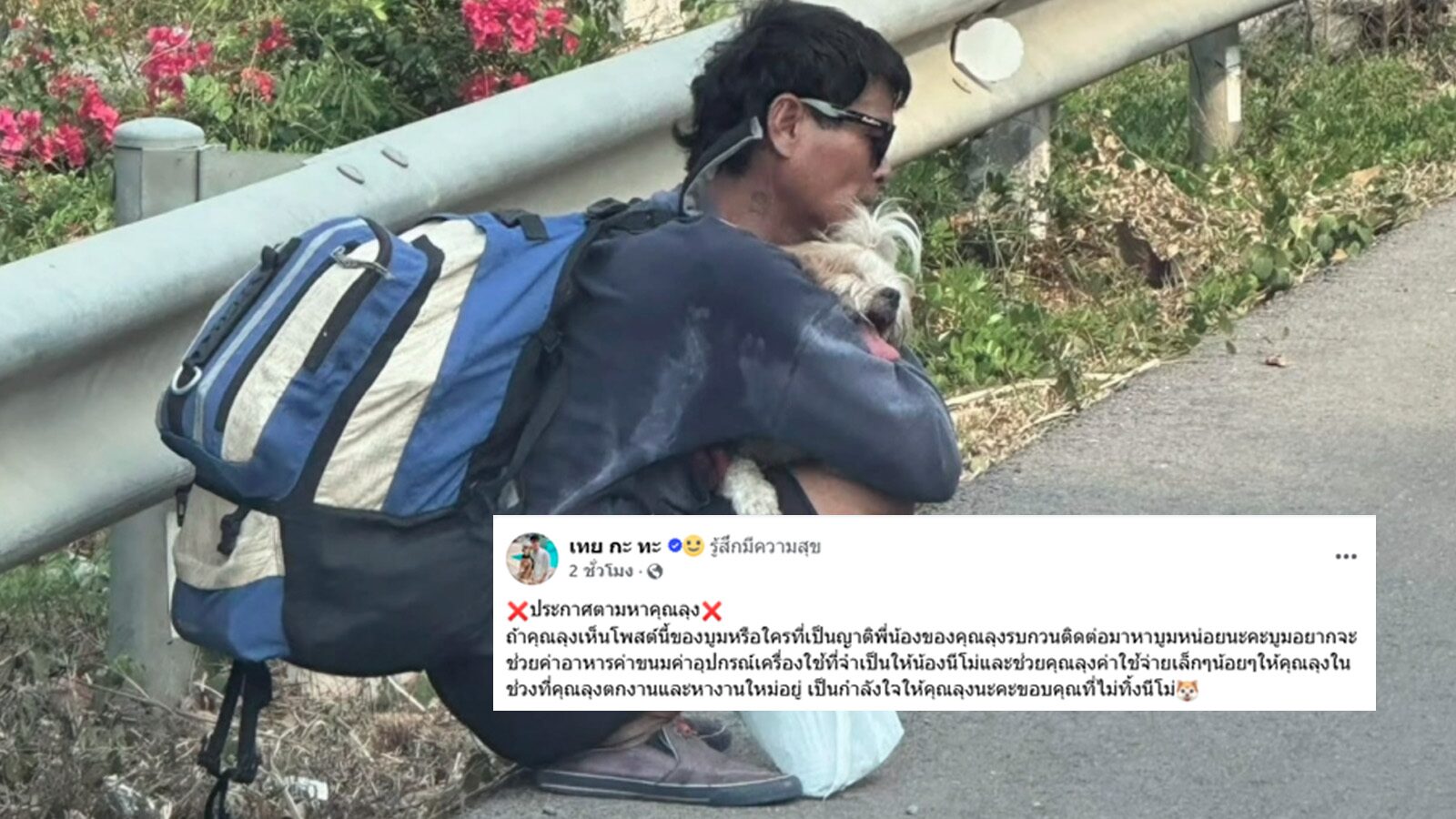 บูม หมูทะ ตามหาลุงอุ้มน้องหมาเดินข้ามจังหวัด หลังรถโดยสารไม่ให้เอาขึ้น ลั่นขอบคุณที่ไม่ทิ้งน้อง ขอส่งน้ำใจช่วยค่าอาหาร-ค่าใช้จ่าย