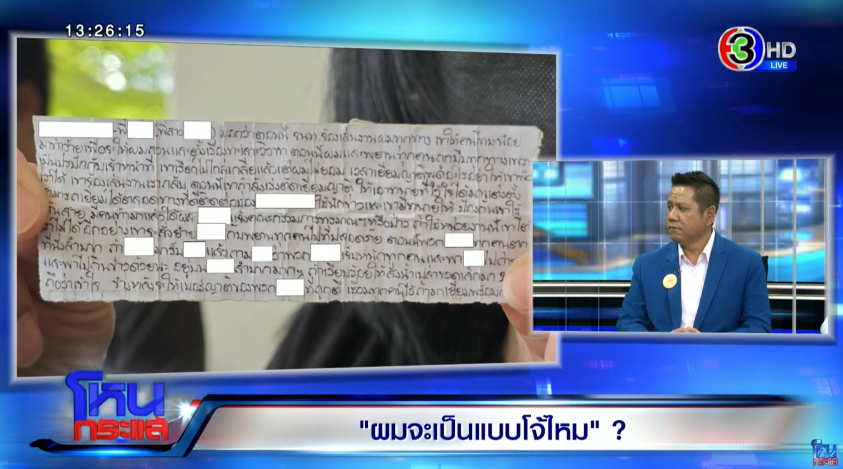 โดยในรายการยังมี เต้ย เป็นอดีตนักโทษที่ออกมาแล้ว เล่าให้ฟังว่า เรื่องราวยกพวกตีกันในเรื่องนั้นมีที่มาอย่างไร โดยเล่าว่า ตนเพิ่งย้ายเข้าไปไม่กี่วันก่อนเกิดเรื่อง เป็นคนภาคกลาง ถึงแม้ยังไม่ได้เข้าร่วมกับพวกบ้านภาคกลาง แต่เลือดเรามันภาคกลาง ปัญหาเกิดจากยาเมา เป็นยารักษาอาการจิตเวชชนิดหนึ่ง กินแล้วจะมีอาการเคลิ้มๆ เมาๆ หลอนๆ เวลาที่ได้ยามาในแต่วันจะแอบเก็บสะสมไว้