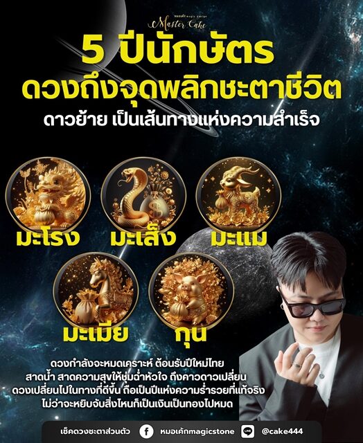 หมอเค้ก Magic stone เปิดชะตา 5 ปีนักษัตร ดวงถึงจุดพลิกชะตาชีวิต ดาวย้าย ถือเป็นปีแห่งความร่ำรวยที่แท้จริง หยิบจับอะไรก็เป็นเงินเป็นทองไปหมด