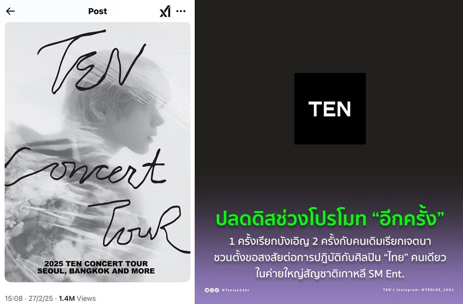 แฟนคลับ "เตนล์ ชิตพล" เรียกร้อง มอง SM ค่ายต้นสังกัดไม่ยุติธรรม ไม่โปรโมตเท่าเทียม พากันติดแฮชแท็ก #SMWhySabotageTEN ชวนตั้งคำถามการทำงาน