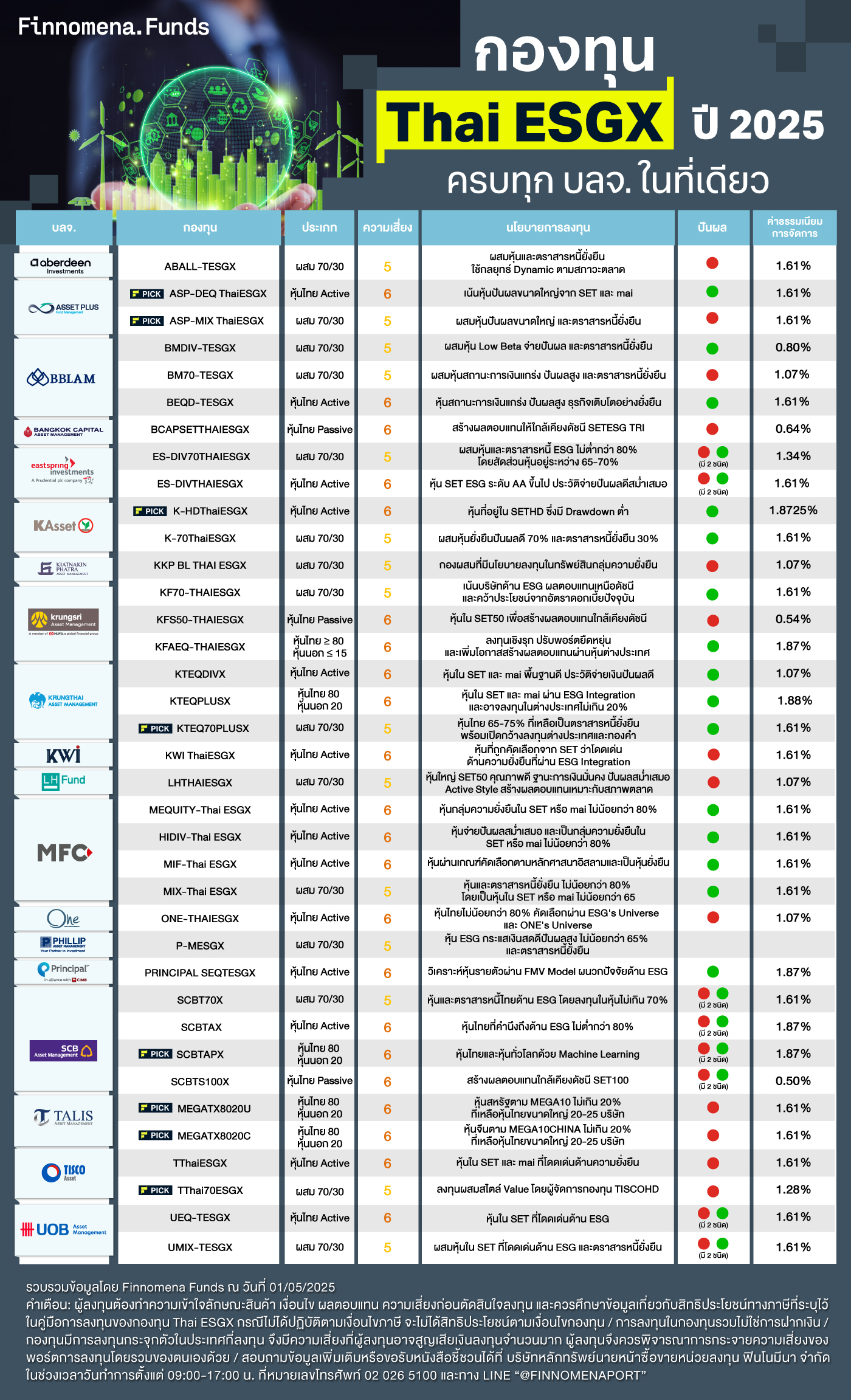 [คลิกเพื่อดูภาพขนาดใหญ่] รวบรวมข้อมูลโดย Finnomena Funds ณ วันที่ 01/05/2025