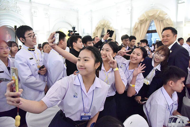 จากนั้น นายกฯ ได้เดินทักทายนักเรียน นักศึกษาที่มาร่วมกิจกรรม โดยเด็กๆ ต่างกรูต่อแถวเข้ามาเพื่อขอถ่ายรูป เซลฟี่กับนายกฯ ซึ่งนายกฯ ได้เดินถ่ายรูปกับน้องๆ ทุกคน พร้อมสัญลักษณ์มือ I love you และพูดคุยอย่างเป็นกันเอง นักเรียนบางคนเรียกนายกฯ ว่า “ลุงหนู” โดยใช้เวลากว่าครึ่งชั่วโมง นายกฯ ได้อวยพรให้กับนักเรียน นักศึกษา ขอให้เรียนหนังสือเก่งๆ บรรยากาศเต็มไปด้วยความคึกคัก