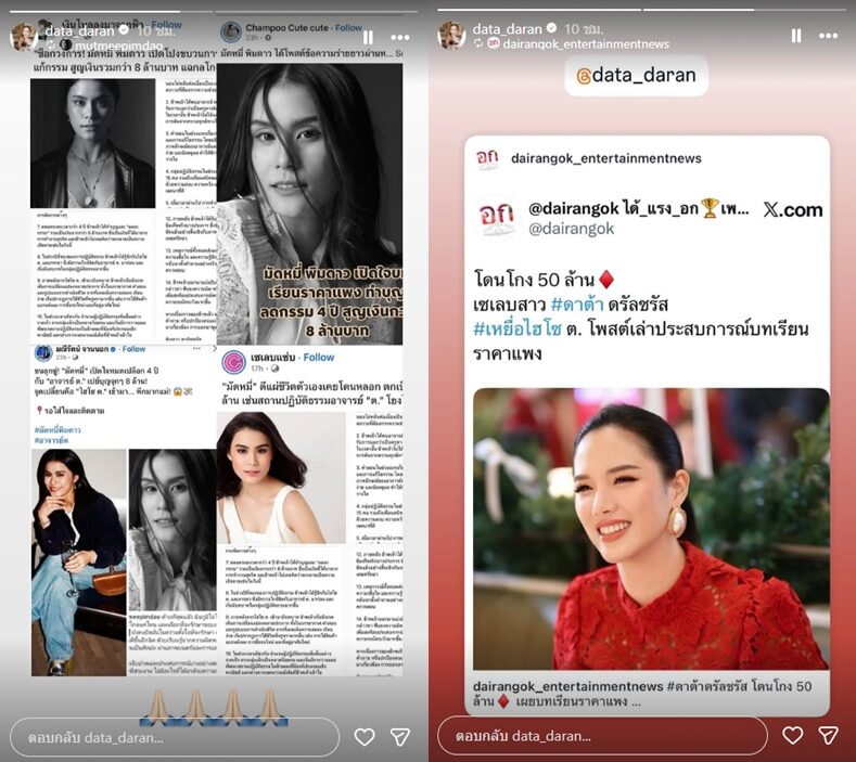 ไฮโซดาต้า ก็โดน50ล้าน แชร์โพสต์ มัดหมี่ เล่าปม อาจารย์ ต. - ไฮโซ ต. พีกมาก