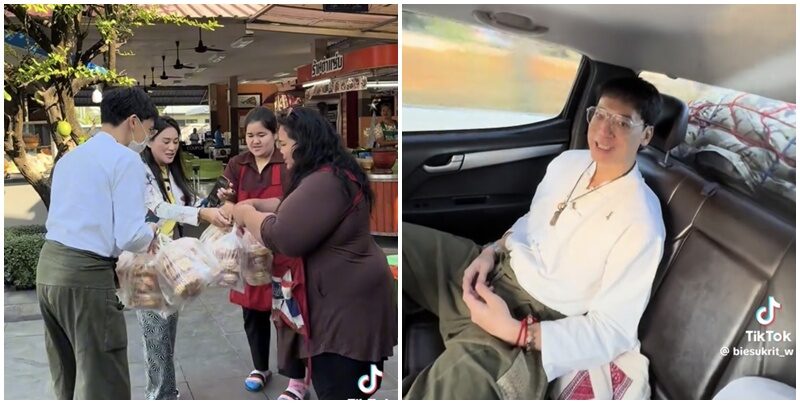 “ทหารไทยสู้ๆ ไปช่วยทหารกัน เราเอาของไปแจกพี่ๆ ทหารที่จังหวัดสระแก้วนะครับ พอแม่ค้าทราบว่าจะเอาของไปให้ทหาร แกก็เอาขนมไข่มาร่วมด้วย”