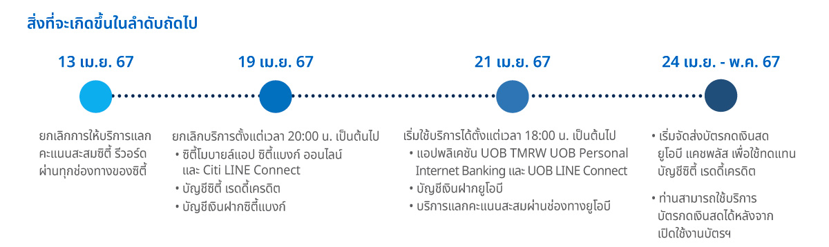 สำหรับระยะเวลาดำเนินการย้ายลูกค้าจากธนาคารซิตี้แบงก์ มาที่ธนาคารยูโอบี มีดังนี้