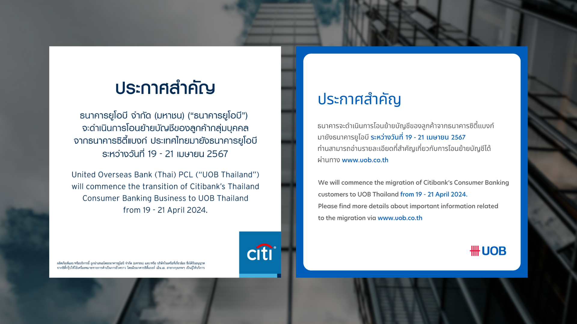 วันที่ 21 มีนาคม 2567 จากกรณีที่ ธนาคารยูโอบี เข้าซื้อกิจการของธนาคารซิตี้แบงก์ เมื่อปี 2565 และกำลังอยู่ในกระบวนการโอนย้ายธุรกิจธนาคารกลุ่มลูกค้าบุคคลในประเทศไทยมาที่ยูโอบีนั้น