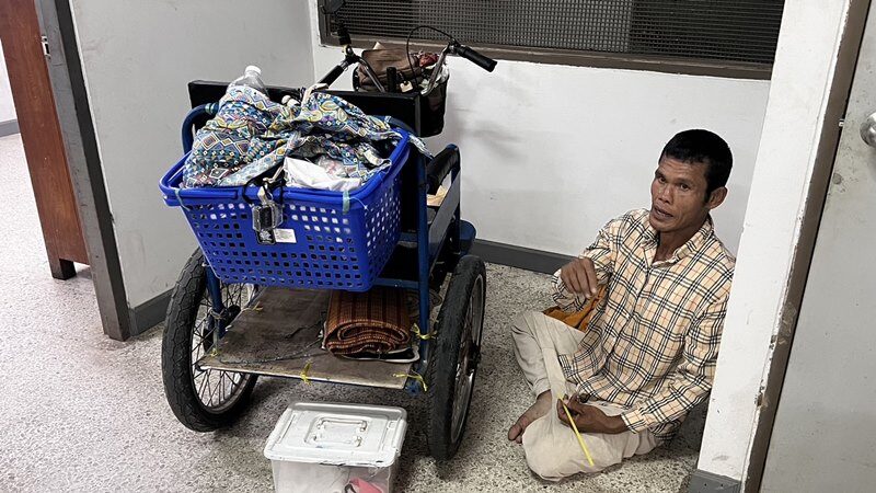 3 สัปดาห์ มาถึงอ่างทอง! มือโยกสามล้อจากสุโขทัยเข้ากรุง แสดงตัวโดนตัดสิทธิพิการ