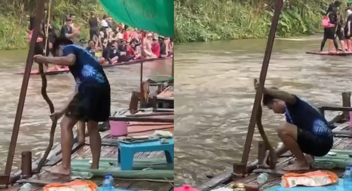 สาวเล่านาทีระทึก งูจงอางตัวใหญ่บุกแพ หนีตายกันวุ่น เที่ยวยังไงให้เป็นผู้ประสบภัย