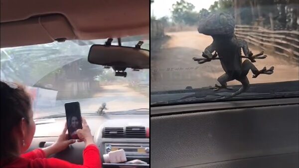 พร้อมหยิบมือถือขึ้นมาถ่ายคลิป ก่อนจะจอดรถให้ตุ๊กแกตัวใหญ่กระโดดลง เพราะไม่สามารถให้เดินทางไปด้วยกันได้ หลังจากนั้นได้นำคลิปไปโพสต์ในเฟซบุ๊กส่วนตัว ก็มีคนเข้ามาคอมเมนต์อยากได้เลขทะเบียนรถเพื่อนำไปเสี่ยงโชค และเชื่อว่าจะมาให้โชค