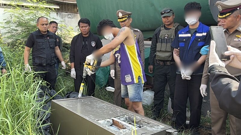 แล้วใช้กุญแจสำรองห้องพักที่แอบขโมยมาจากทางคอนโด ไขเข้าไปขโมยตู้เซฟในห้องของผู้เสียหาย โดยได้เข็นตู้เซฟลงมาจากคอนโด แล้วนำไปขึ้นรถกระบะที่เตรียมไว้ ก่อนนำตู้เซฟมาซ่อนไว้ในบ้านพักภายในหมู่บ้าน ซึ่งเป็นบ้านของคนรู้จักกับผู้ต้องหา แต่ไม่มีใครอยู่อาศัย เพื่อทำการเจาะตู้เซฟดังกล่าว