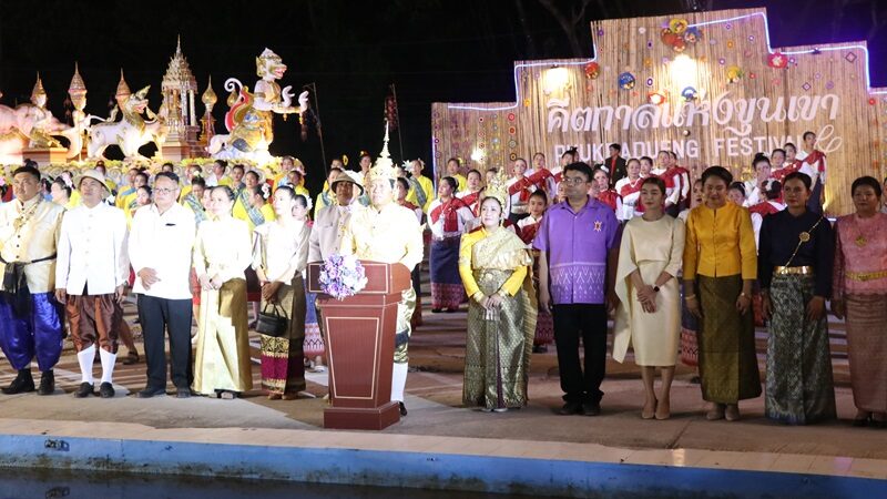 วันที่ 6 พ.ย.2567 ที่หน้าอำเภอภูกระดึง จ.เลย นายศุภฤกษ์ น้อยสุวรรณ นายอำเภอภูกระดึง และองค์กรปกครองส่วนท้องถิ่น กำนัน ผู้ใหญ่บ้าน พี่น้องประชาชนชาวอำเภอภูกระดึง ร่วมจัดงานประเพณี สักการะพระพุทธเมตตา บูชาเจ้าปู่ภูกระดึง คีตกาลแห่งขุนเขาสืบสานตำนานภูกระดึง ตามความเชื่อว่าภูกระดึง เป็นดินแดนของรุขเทวดา นางฟ้า สิงสถิตอยู่บนภูกระดึง ตามตำนานเล่าขานกันมา โดยปีนี้จัดขึ้นระหว่างวันที่ 5-10 พ.ย.2567