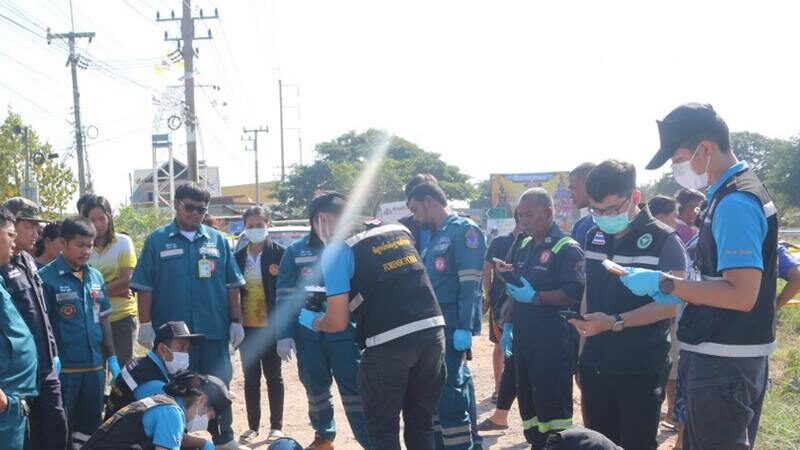 ที่เกิดเหตุพบรถจักรยานยนต์ยี่ห้อฮอนด้า รุ่นเวฟ 125 ไอ สีน้ำเงิน สภาพล้มคว่ำโดยมีผู้เสียชีวิตนั่งคร่อมรถอยู่ เป็นชาย 1 ราย และหญิง 1 ราย ทราบชื่อต่อมา คือ นายนกเล็ก อายุ 66 ปี สวมหมวกกันน็อกปิดบังใบหน้า กระสุนปืนยิงเข้าใบหน้าและแผ่นหลัง