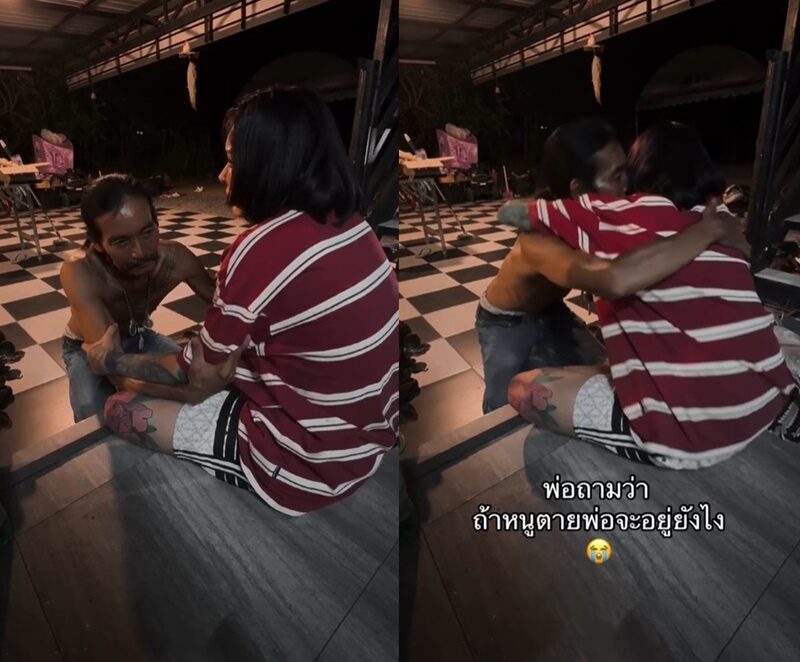 โดยเป็นโมเมนต์ขณะพ่อกำลังปลอบใจลูกสาว พร้อมทั้งสวมกอดให้กำลังใจลูกสาว พร้อมทั้งข้อความตอนท้ายคลิปด้วยว่า “พ่อถามว่า ถ้าหนูตายพ่อจะอยู่ยังไง”