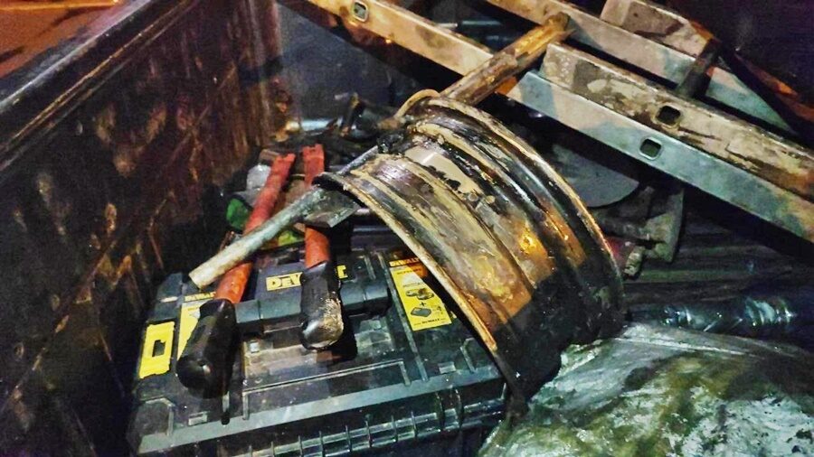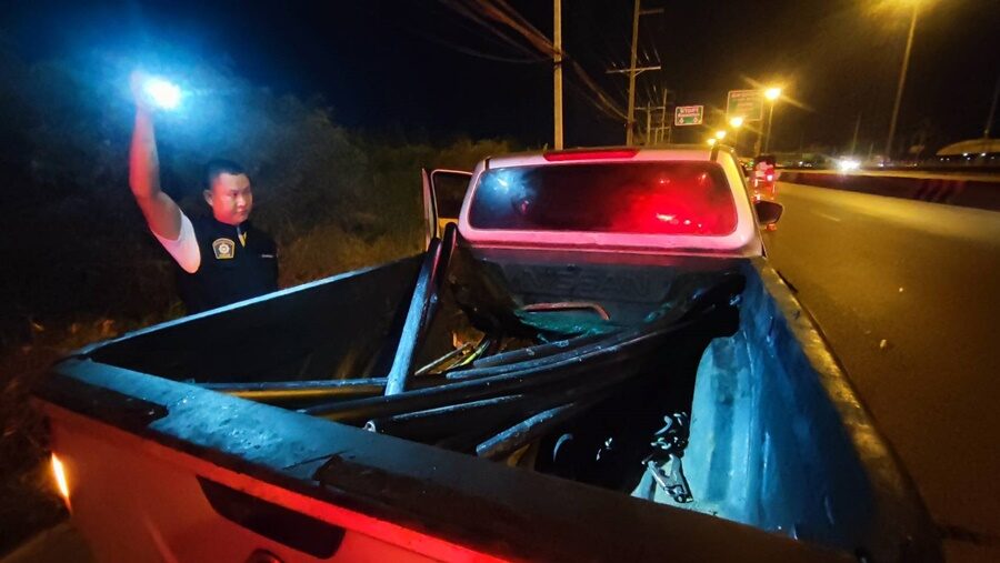 ที่เกิดเหตุพบถนนถูกขุดได้รับความเสียหายจำนวน 2 จุด และ1.รถกระบะยี่ห้อ อีซูซุ ทะเบียน บษ 9104 พระนครศรีอยุธยา 2.รถกระบะยี่ห้อ อีซูซุ ทะเบียน 9054 สงขลา 3.รถกระบะ ยี่ห้อนิสัน ทะเบียน 1ฒค 6755 กรุงเทพมหานคร 4.รถหกล้อยี่ห้อ ฮีโน่ ทะเบียน 70-6716 สุพรรณบุรี มีสายเคเบิ้ลที่ถูกตัดเป็นท่อนๆ วางอยู่หลังกระบะ และในรถกระบะยังมีคีมตัดสายไฟขนาดใหญ่ บันไดเหล็ก