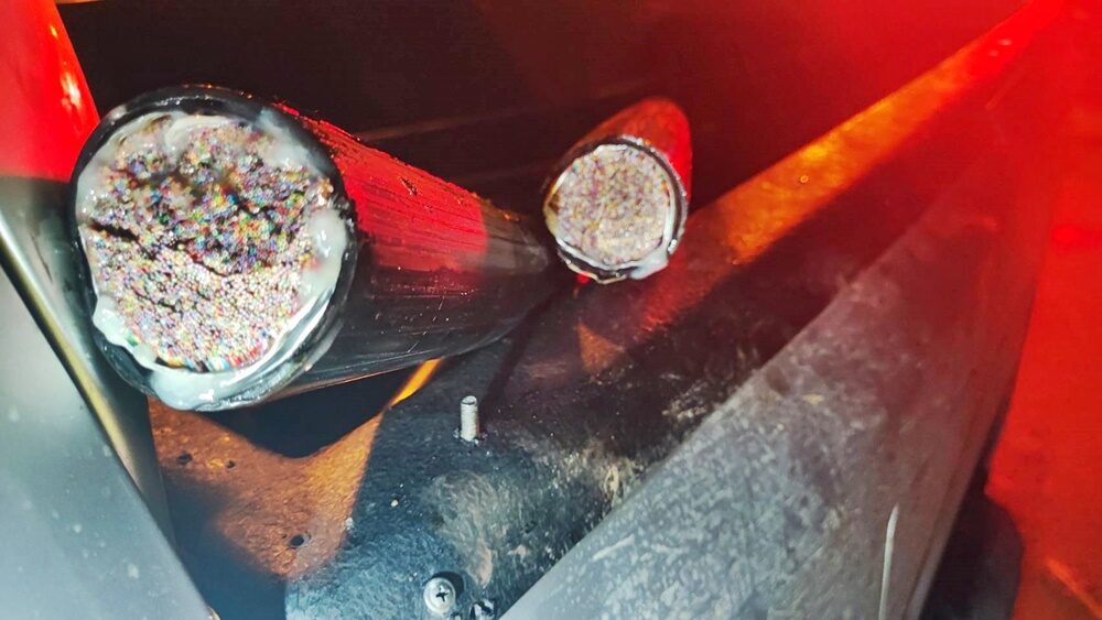 และที่บนถนนก็ยังพบสายเคเบิ้ลถูกตัดเป็นท่อนๆ จำนวนหลาย 10 ท่อน ซึ่งทางเจ้าหน้าที่ตำรวจสามารถจับกุมตัวผู้ก่อเหตุเอาไว้ได้ 1 คนทราบชื่อ นายจีระพันธ์ อายุ 36 ปีและในรถกระบะยังมีใบราคาของการปลอกสาย