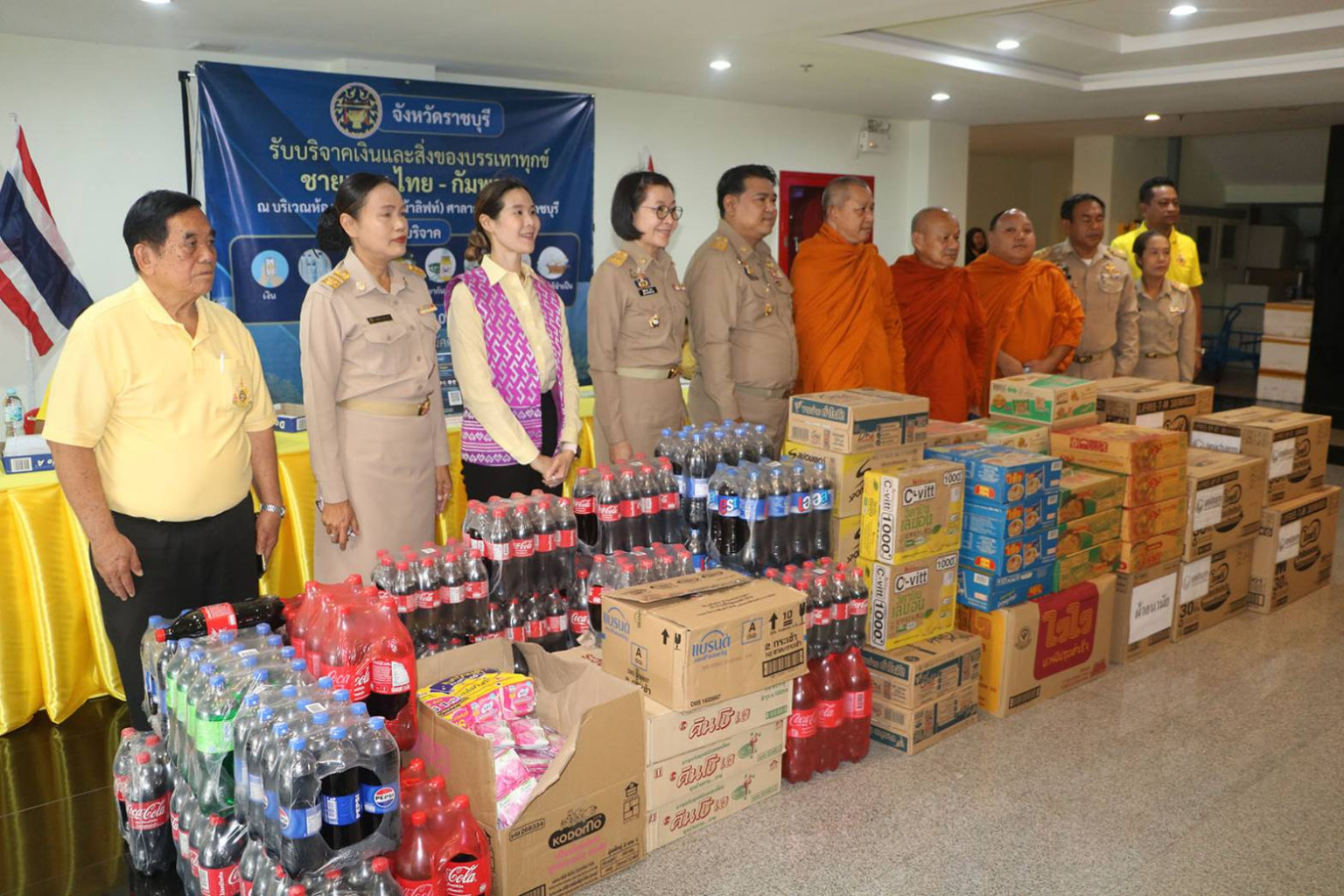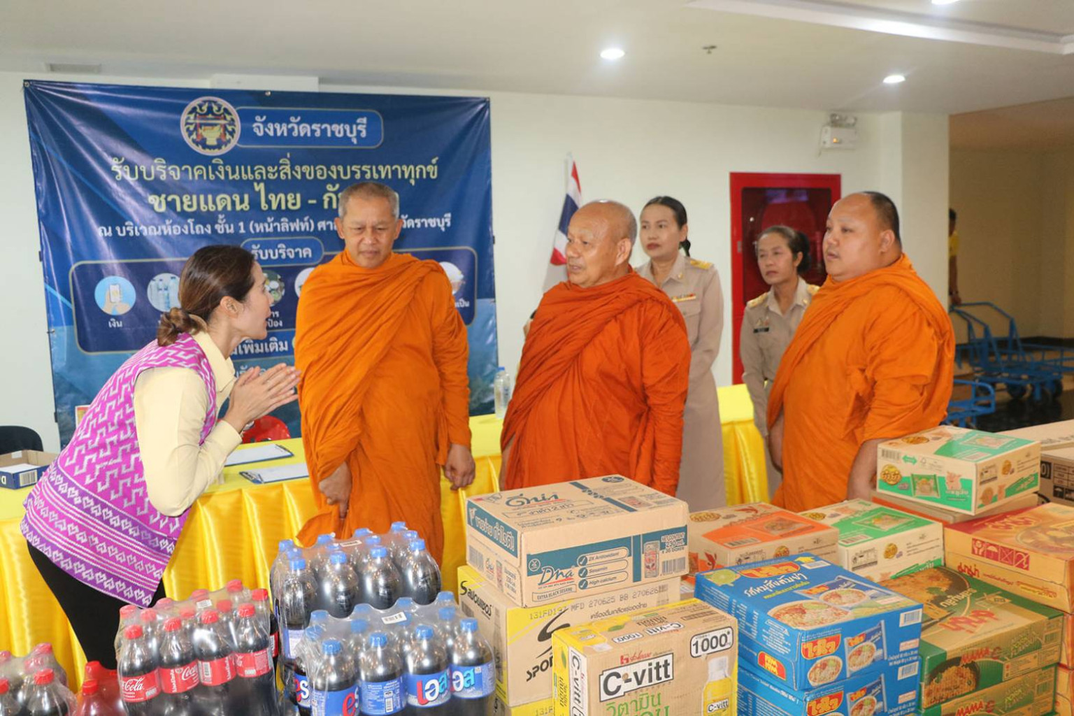 ( 29 กค. 68) ที่บริเวณศาลากลางชั้น 1 จังหวัดราชบุรี นางสาวฐิติลักษณ์ คำพา ผู้ว่าราชการจังหวัดฯ นายพุทธพงษ์ สุริยะสิงห์ รองผู้ว่าราชการจังหวัด รับมอบสิ่งของบริจาค ซึ่งเป็นเครื่องอุปโภค บริโภค และของใช้ประจำวันที่จำเป็น รวมทั้งเงิน เพื่อนำไปช่วยเหลือบรรเทาทุกข์ให้แก่ประชาชนผู้อพยพและทหารที่อยู่แนวชายแดนไทย – กัมพูชา ซึ่งเป็นพื้นที่ได้รับผลกระทบในการสู้รบอยู่ในขณะนี้ โดยมีผู้มีจิตศรัทธาร่วมบริจาค