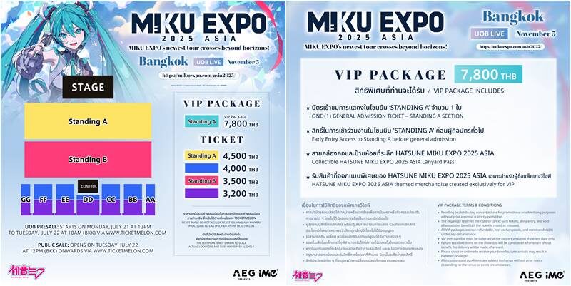 งานนี้จัดโดย AEG Presents Asia และ iMe Thailand เปิดขายบัตรสำหรับงาน HATSUNE MIKU EXPO 2025 in Bangkok เร็วๆ นี้!