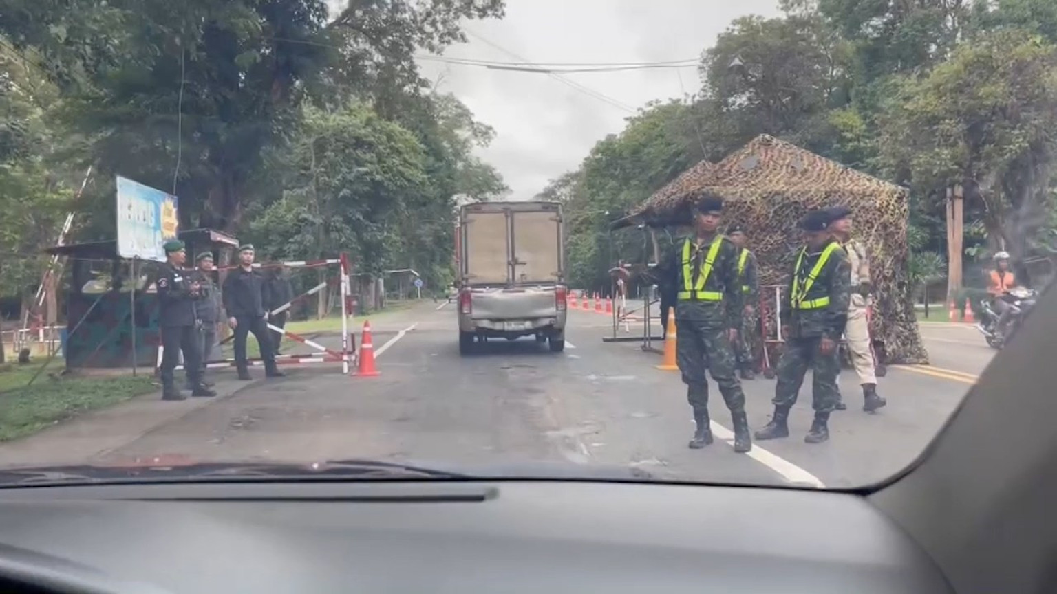 ส่วนนายเมธี ประวัน โชว์เฟอร์รถบรรทุกชาว อ.ปราสาท บอกว่า ตนกำลังจะขับรถกลับ เห็นมีคนบอกว่า จะข้ามแดนได้จะต้องเป็นรถที่มีทะเบียนป้ายเหลือง ที่สามารถข้ามระหว่างประเทศได้ และจะต้องเป็นเจ้าของรถตัวจริง หรือไม่ก็ต้องมีหนังสือมอบอำนาจให้คนขับแทน ซึ่งส่วนใหญ่จะเป็นลูกน้องที่ถูกจ้างมาขับ เถ้าแก่จะไม่ขับเอง จึงพากันกลับ บางคนก็รอดูเพื่อความแน่ใจว่าจะข้ามไปได้หรือไม่