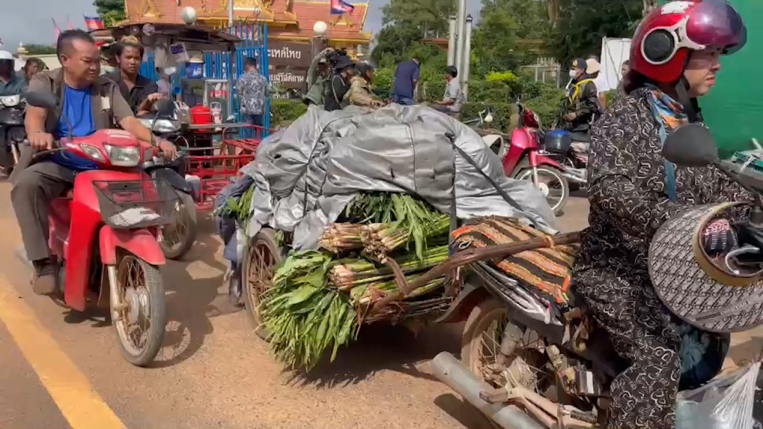 วันนี้ (23 มิ.ย.68) เวลา 09.00 น. จนท.กัมพูชาได้ทำการเปิดประตูด่าน ฝั่งกัมพูชา บริเวณจุดผ่านแดนถาวรช่องจอม ต.ด่าน อ.กาบเชิง จ.สุรินทร์ หลังจากไทยเปิดตั้งแต่เวลา 08.00 น.พบว่าชาวกัมพูชาที่รอข้ามแดนขนของใช้ส่วนตัวกลับประเทศอย่างต่อเนื่อง ขณะที่ชาวกัมพูชาที่ข้ามแดนเข้ามายังฝั่งไทยมีจำนวนมากขึ้น จากการสอบถามชาวกัมพูชา บอกว่า พากันข้ามแดนมาซื้อสิ่งของใช้จำเป็น ที่บริเวณตลาดการค้าชายแดนช่องจอม เพราะเคยซื้อของที่ฝั่งไทยเป็นประจำมากว่า 20 ปี โดยส่วนใหญ่พบว่าชาวกัมพูชาใช้บริการรถจักรยานยนต์รับจ้าง และรถจักรยานยนต์ส่วนตัว ส่วนรถยนต์ส่วนตัวมีไม่มากนัก
