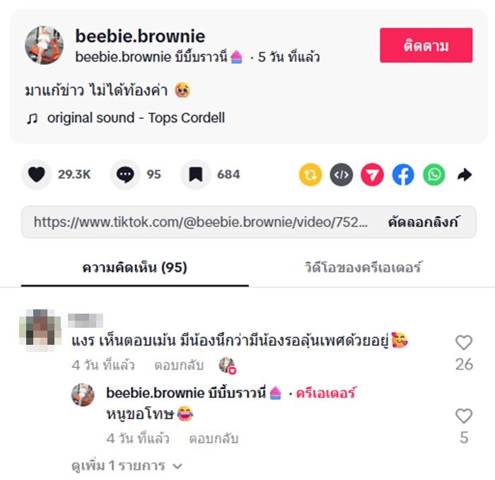 @beebie.brownieมาแก้ข่าว ไม่ได้ท้องค่า ♬ original sound - Tops Cordell
