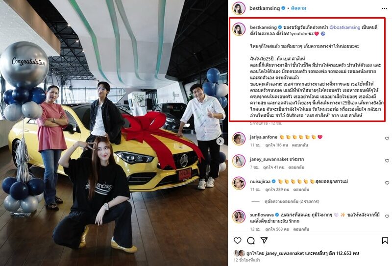 อ่านข่าวต้นฉบับได้ที่ : เบสท์ คำสิงห์ ถอยเบนซ์ป้ายแดง ของขวัญวันเกิด โบ๊ท น้องชาย สุดจริงแห่ชมเก่งมาก