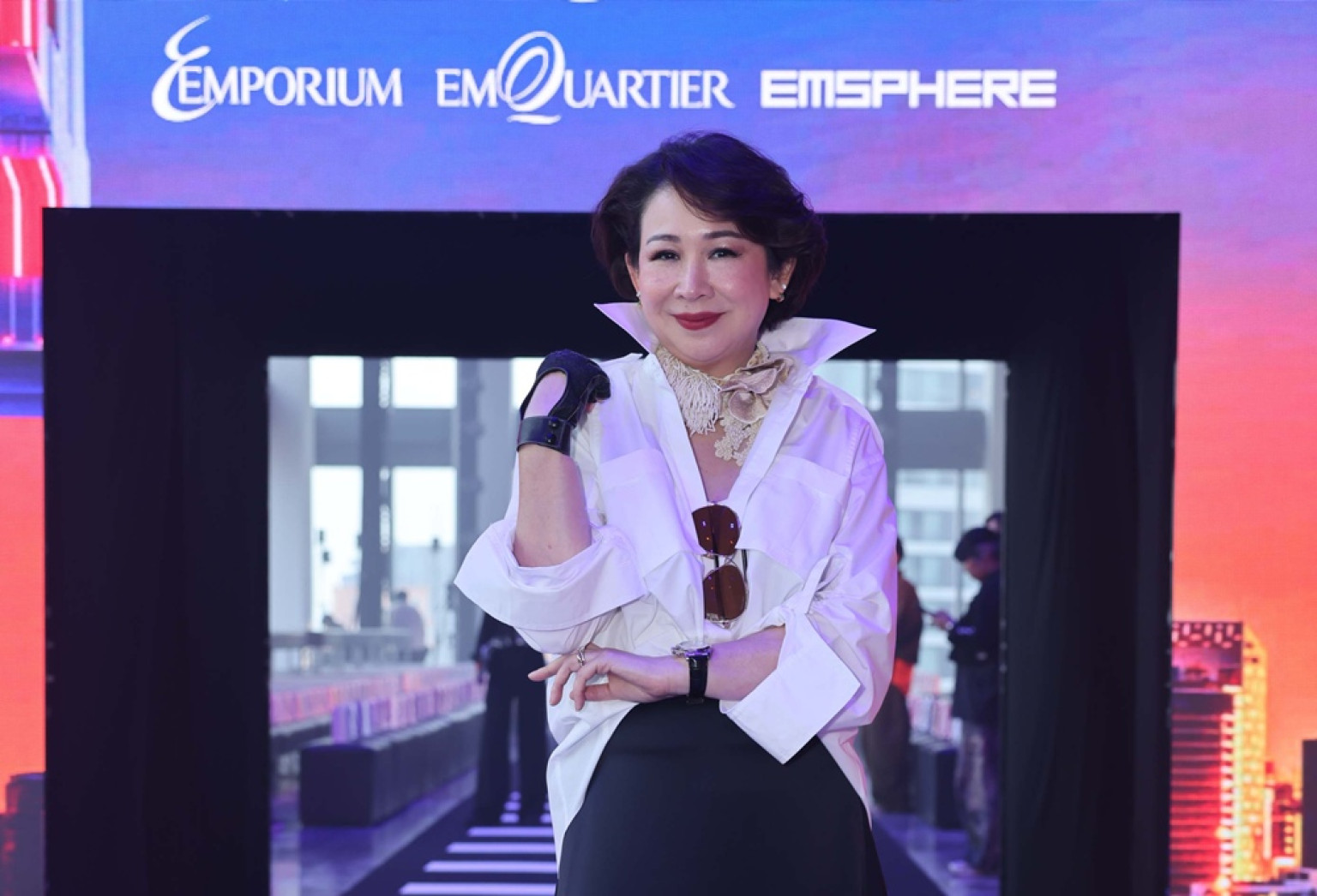 ภายในงาน EMFASHIONICON EDGE ในวันนี้ ได้รับเกียรติจากคณะผู้บริหารเอ็ม ดิสทริค พาร์ตเนอร์ และแขกคนสำคัญร่วมชมแฟชั่นโชว์ อย่างศุภลักษณ์ อัมพุช ประธานกรรมการบริหาร เดอะมอลล์ กรุ๊ป และ เอ็ม ดิสทริค เกรียงศักดิ์ ตันติพิภพ กรรมการบริหาร อาวุโส เดอะมอลล์ กรุ๊ป และเอ็ม ดิสทริค อัลแมนโด้ โทโรเมลลี่ ประธานเจ้าหน้าที่บริหาร อรธิรา ภาคสุวรรณ์ กรรมการผู้จัดการอาวุโส สุธาวดี ศิริธนชัย กรรมการผู้จัดการ ไพพรรณ หลักแหลม ผู้อำนวยการใหญ่บริหารศูนย์การค้า และอิทธิฤทธิ์ รัตนทารส อัมพุช ผู้ช่วยผู้จัดการทั่วไป พร้อมด้วยพาร์ตเนอร์คนสำคัญ ได้แก่ วาสนา อินทะแสง ผู้ก่อตั้งไบโอแอคทีฟ ประเทศไทย และ นานะ โทคุเสะ (Nana Tokuse) มิสแกรนด์ญี่ปุ่น 2021