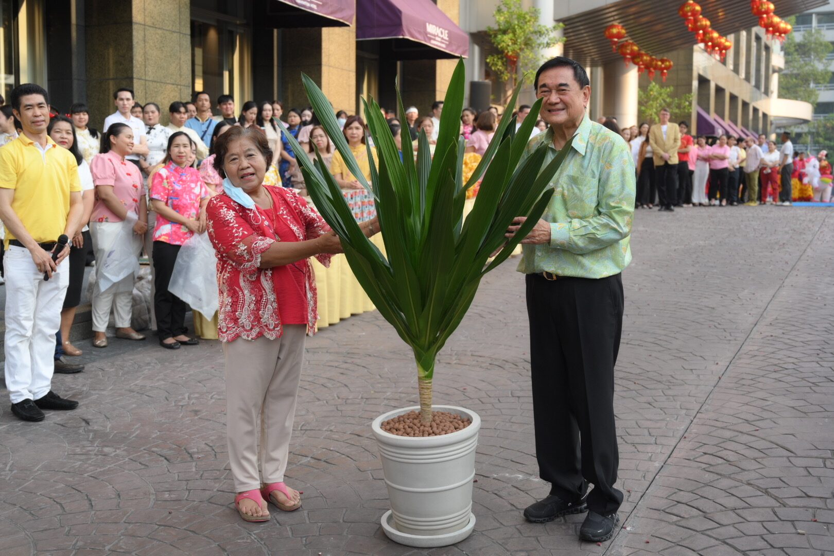 ขณะที่ ป้าอู๊ด กล่าวว่า ตนเป็นตัวแทนในนามของชุมชนเปรมสุขสันต์ นำต้นวาสนานางฟ้า มามอบให้กับเจ้าสัว เพราะอยากจะตอบแทนที่ท่านเป็นผู้ให้มาตลอดระยะเวลาหลายปี และที่ผ่านมาพวกเราไม่ได้มีของขวัญตอบแทนเลย ในปีนี้พวกเราเลยตั้งใจมอบต้นไม้ต้นนี้ให้เป็นการตอบแทน และขอให้ท่านมีความสุขความเจริญอายุยืนและกิจการเจริญรุ่งเรืองตลอดไป