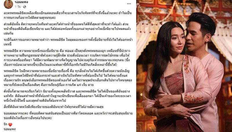 รอมแพง โพสต์ถึงตอนจบ พรหมลิขิต พรุ่งนี้อวสาน เผยความหมายชื่อนิยายที่ยังไม่เคยบอก