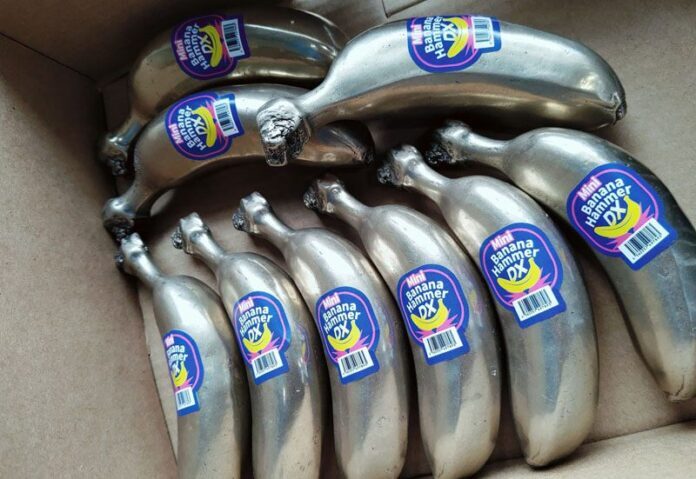 ก่อนจะมีคนออกมาเฉลยว่า กล้วยเหล็กที่เห็นนี้คือ ค้อนกล้วยเหล็ก (Banana Hammer) ใช้สำหรับตอกตะปู โดยเริ่มผลิตขึ้นตั้งแต่ปี 2563 มาพร้อมคุณสมบัติเด่นอย่างใช้ในสภาพแวดล้อมที่มีอุณหภูมิสูงถึง 1,000 องศาเซลเซียสได้ โดยราคาอยู่ที่ลูกละ 11,877 เยนหรือราว 2,800 บาท (อ่านเพิ่มเติม คลิก)