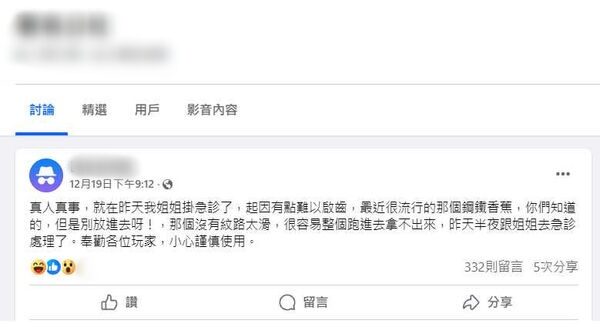 โดยชาวเน็ตโพสต์เรื่องดังกล่าวในกลุ่มเฟซบุ๊ก ระบุว่า "น้องสาวเข้าห้องฉุกเฉินกลางดึก ซึ่งอธิบายเหตุผลได้ยาก คุณคงรู้จัก กล้วยเหล็ก ที่โด่งดังมากในช่วงนี้ แต่อย่าใส่…. เพราะกล้วยเหล็กไม่มีเส้น เรียบ และลื่นมาก น้องสาวเอาไปใช้ ตอนใช้ก็หายเอาออกไม่ได้ จึงส่งตัวไปรักษาที่ห้องฉุกเฉินกลางดึก ผมแนะนำทุกคนใช้มันด้วยความระมัดระวัง” รวมถึงโปรดอย่าเลียนแบบพฤติกรรม