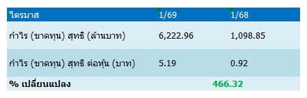 บริษัท ปูนซิเมนต์ไทย จำกัด (มหาชน) หรือ SCC รายงานผลการดำเนินงานไตรมาสที่ 1 ปี 2569 สิ้นสุดวันที่ 31 มีนาคม 2569 มีกำไรสุทธิ ดังนี้