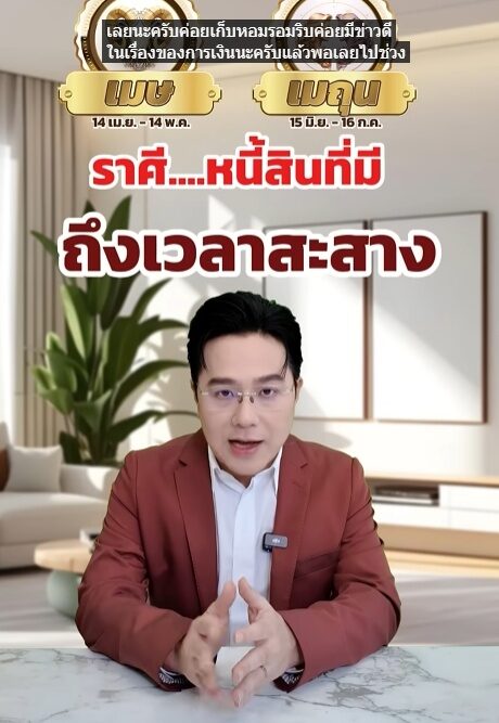 หมอช้าง ทศพร โพสต์คลิปถึงราศีดวงการเงินแรงหลังช่วงสงกรานต์ได้เวลาเคลียร์หนี้สินว่า ราศีหนี้สินที่มี ถึงเวลาสะสาง ดวงการเงินช่วงนี้พุ่งแรงสุดๆ เป็นช่วงเวลาดวงดาวการเงินเริ่มจะมีพลัง ต้องแสดงความยินดี 2 ราศีนี้คือ