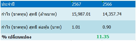 นอกจากนี้บริษัทเตรียมจ่ายปันผลงวดดำเนินงานวันที่ 1 ม.ค. 2567 ถึงวันที่ 31 ธ.ค. 2567 เป็นเงินสด 0.40 บาท กำหนดวันที่ไม่ได้รับสิทธิ์ปันผล (XD) วันที่ 12 มี.ค.2568 และกำหนดจ่ายปันผลวันที่ 25 เม.ย.2568