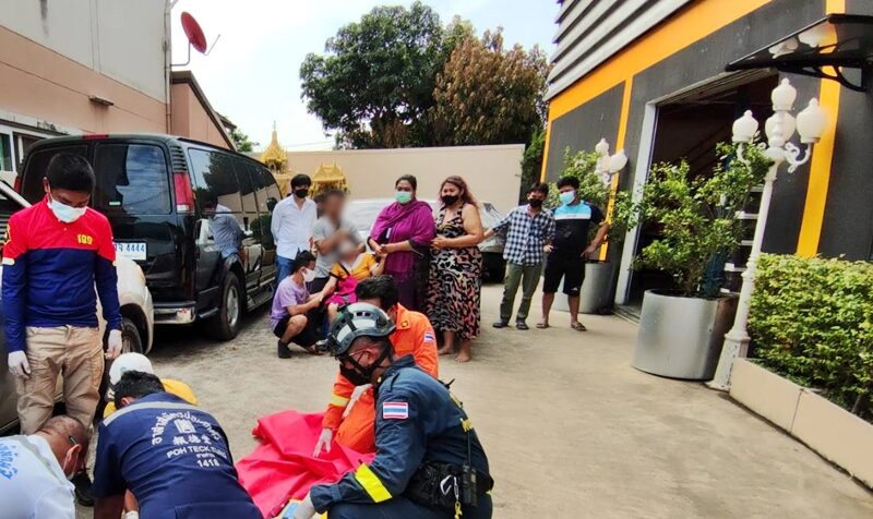 ที่เกิดเหตุอยู่ภายในโรงงานเลขที่ 53 ซึ่งประกอบกิจการทำกระเป๋า พบคนงานกำลังช่วยกันปั๊มหัวใจเพื่อช่วยชีวิต เด็กชายวัย 1 ขวบ 11 เดือน สัญชาติเมียนมา เจ้าหน้าที่จึงเร่งให้การช่วยต่อโดยใช้เครื่องกระตุ้นหัวใจใช้เวลากว่า 30 นาทีไม่เป็นผล เด็กไม่มีชีพจร ทำให้ทั้งพ่อและแม่เด็กรวมถึงคนงานชาวเมียนมา ร้องไห้ระงมเป็นที่น่าสลดใจ