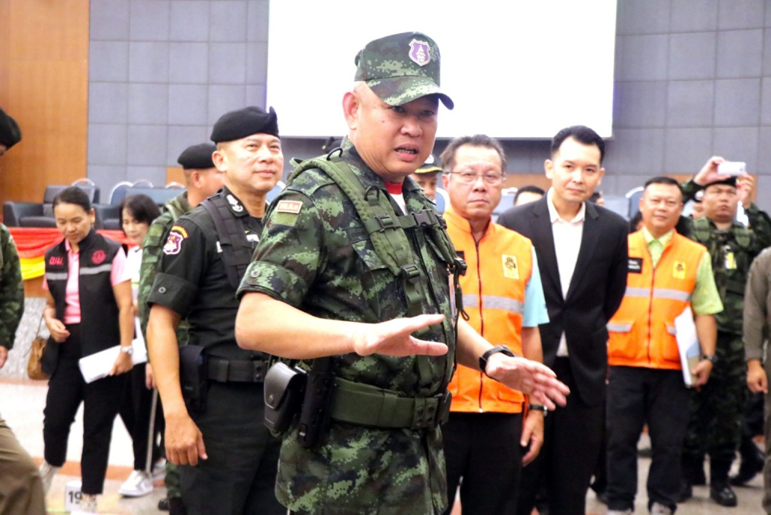 วันที่ 18 มิ.ย.68 ณ หอประชุมองค์การบริหารส่วนจังหวัดสระแก้ว ตำบลท่าเกษมอำเภอเมืองสระแก้ว จังหวัดสระแก้ว พล.ต.เบญจพล เดชาติวงศ์ ณ อยุธยา ผู้บัญชาการกองกำลังบูรพา เป็นประธานพิธีเปิดการฝึกซ้อมแผนเผชิญเหตุอพยพประชาชนบนภูมิประเทศจำลอง ( ROC Drill ) ประจำปี 2568 โดยมี นายเชาวเนตร ยิ้มประเสริฐ รองผู้ว่าราชการจังหวัดสระแก้ว พ.อ.สุชญาณ ศรีตระกูล รอง ผอ.รมน.จังหวัด ส.ก.(ท.) พ.อ. ชัยณรงค์ กาสี ผบ.ร.12 รอ. , รอง ผบ.ตชด. และส่วนราชการที่เกี่ยวข้อง เข้าร่วมพิธีเปิดการฝึกฯ