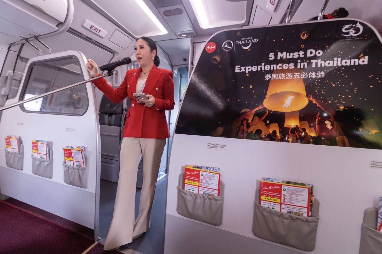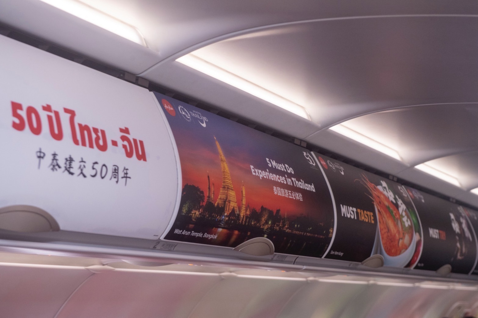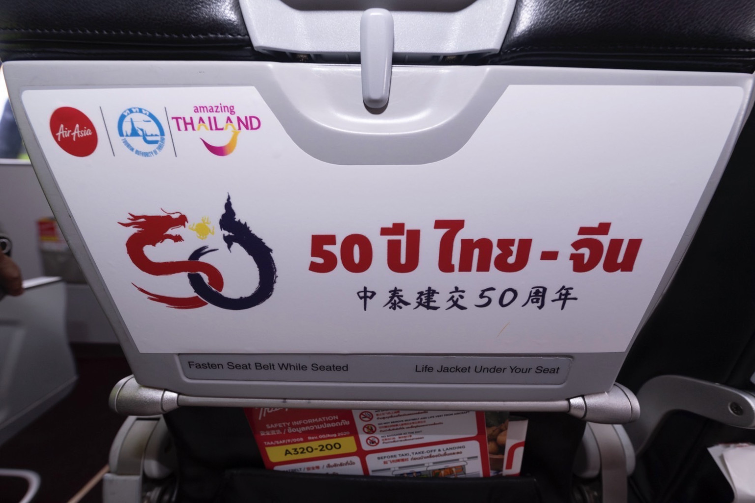 ทั้งนี้การเปิดตัวเครื่องบินไทยแอร์เอเชีย แอร์บัส A320 ทะเบียน HS-BBR ซึ่งแต่งแต้มลวดลายในโอกาสพิเศษด้วยภาพสัตว์มงคลในตำนาน "มังกรจีนและพญานาคไทย" ที่เเสดงถึงความเเข็งเเกร่งเเละความเจริญรุ่งเรืองมาประทับบนลายเครื่อง พร้อมข้อความทักทาย ใน 2 ภาษา "สวัสดี - 你好 (Nihao)"เป็นสื่อประชาสัมพันธ์ในเครื่อง เพื่อสะท้อนถึงความสัมพันธ์ที่ดีระหว่างสองประเทศที่มีอย่างต่อเนื่องยาวนานครบ 50 ปี โดยเครื่องบินลำดังกล่าวจะบินอวดโฉมไปในหลากหลายจุดหมายปลายทางทั้งในประเทศและต่างประเทศเพื่อประชาสัมพันธ์การท่องเที่ยวไทยให้เป็นที่รู้จักในวงกว้าง