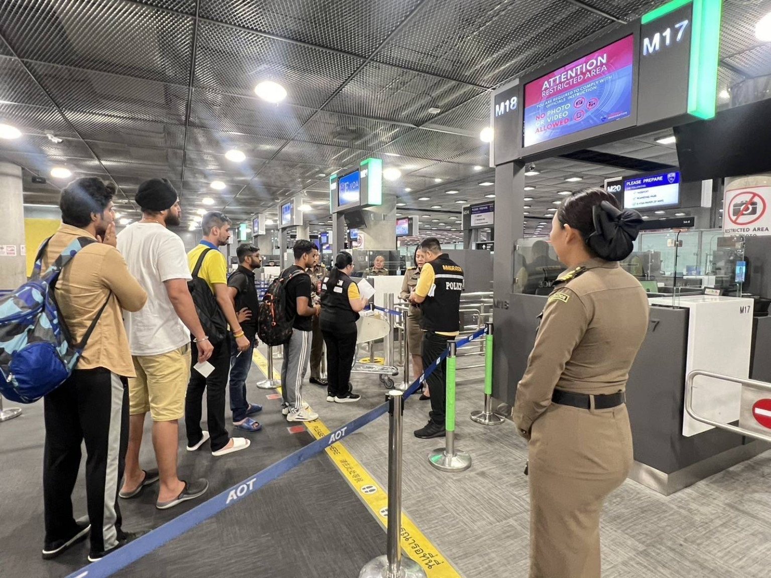 ในส่วนของการเข้าทางอากาศ โดยเฉพาะทาง สนามบินสุวรรณภูมิ และ ดอนเมือง ซึ่งคาดว่า จะมีกลุ่มต่างชาติที่ใช้เส้นทางเข้าออกไทย-กัมพูชา หันมาเดินทางเข้าแทนช่องทางบกนั้นวันนี้ ( 6 มิ.ย.2568 ) ตม.สนามบิน พร้อมขานรับ นโยบาย พล.ต.อ.กิตติ์รัฐ พันธุ์เพ็ชร์ ผบ.ตร ที่มีจุดยืนด้านความมั่นคงชัดเจน โดยเฉพาะ พล.ต.ท.ภาณุมาศ บุญญลักษม์ ผบช.สตม.ได้เคยกำชับการสกัดกั้นคนต่างชาติที่มีพฤติกรรมเข้าออกประเทศด้วยฟรีวีซ่าที่ผิดวัตถุประสงค์ และกลุ่มที่เสี่ยงต่อการกระทำผิด โดยเฉพาะแก็งค์คอลเซ็นเตอร์ และ การพนันออนไลน์ ซึ่งอาจใช้ไทยเป็นแหล่งทำธุรกิจฟอกเงิน จากการทำธุรกิจผิดกฏหมายในประเทศเพื่อนบ้าน และการปิดด่านชายแดน อาจมีกลุ่มต่างชาติที่เกี่ยวข้องกับการกระทำผิด ใช้เส้นทางเข้าไทยทางเครื่องบินแทนการผ่านแดนทางบก