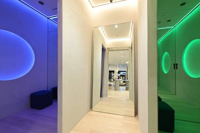 โดย ORI ยังได้ออกแบบ Retail Experience ให้กับลูกค้าที่เข้ามาร้านด้วยการดีไซน์ร้านในคอนเซ็ปต์ “From Store To Studio” มอบบรรยากาศที่มีความโมเดิร์นแต่ยังมอบความรู้สึกผ่อนคลาย โทนสีที่ซอฟท์เป็นธรรมชาติ เสมือนอยู่ในสตูดิโอออกกำลังกาย รวมทั้งการใช้เส้นโค้งมนของตัว O จาก ORI เข้ามาเป็นหลักในการออกแบบอีกด้วย พร้อมทั้งมีพื้นที่ Flexible Space สีน้ำเงินตกแต่งด้วยเฟอร์นิเจอร์ที่สามารถเคลื่อนย้ายได้สำหรับรองรับกิจ กรรมเอ็กซ์คลูชีฟสำหรับลูกค้าต่อไปในอนาคต เช่น เครื่องพิลาทิสสำหรับการทดลองเล่นเมื่อสวมใส่สินค้าของ ORI รวมไปถึงห้อง Fitting Room ที่ทางแบรนด์แสดงถึงความใส่ใจในรายละเอียดที่อยากให้ลูกค้าได้ใช้เวลาเพื่อรีเฟรชร่างกาย โดยลูกค้าสามารถปรับเปลี่ยนสีภายในห้องได้ตามความต้องการ เช่น Light Therapy สีแดง (IGNITE) เมื่อคุณต้องการพลังและความมั่นใจ สีเขียว (BALANCE) เมื่อต้องการเริ่มต้นสิ่งใหม่ ให้ความรู้สึกเชื่อมโยงกับตัวเอง สีน้ำเงิน (REFLECT) ให้ความสงบ ผ่อนคลายภายใน และสุดท้ายสีธรรมชาติ (TRUE LIGHT) ให้ลูกค้าได้ดูความพอดีของเสื้อผ้า สีผิว เพื่อเพิ่มความมั่นใจก่อนตัดสินใจซื้อ นอกจากนี้ ทางแบรนด์ยังอบรมพนักงานให้สามารถเป็นที่ปรึกษาให้คำแนะนำเรื่องการเลือกเนื้อผ้าของสินค้าให้ตรงกับกิจกรรมแอคทีฟเพื่อตอบโจทย์ไลฟ์สไตล์ของลูกค้าอีกด้วย