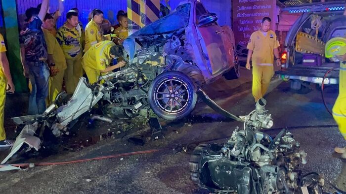 เครื่องยนต์ขาดหลุดกระเด็น เผยภาพนาทีสลด หนุ่ม ขับกระบะแต่งซิ่ง เสียหลักหมุนฟาดอัดเสาไฟฟ้าพังยับ เสียชีวิตคาที่ สุดเศร้า ภรรยาเพิ่งคลอดลูก พ่อแม่เห็นศพร่ำไห้