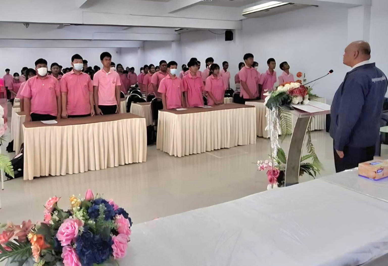 "เสียงเพลงสรรเสริญพระบารมีดังกระหึ่มกึกก้อง" สันติบาลสมุทรสาคร จัดอบรมปลุกจิตสำนึกนักเรียนให้รักชาติปกป้องสถาบัน