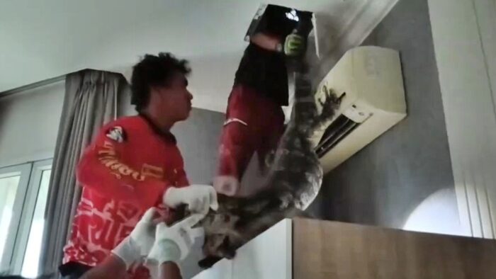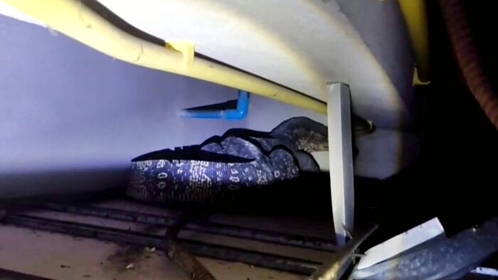 เจ้าหน้าที่กู้ภัยต้องปีนขึ้นไปส่องดูจากช่องของฝ้าเพดานที่ตัวเงินตัวทองทะลุออกมา พบตัวเงินตัวทองขนาดใหญ่ซ่อนตัวอยู่ พอเจ้าตัวเงินตัวทองเห็นเจ้าหน้าที่ก็คลานหนีไปมา ไปซ่อนตัวอีกจุด
