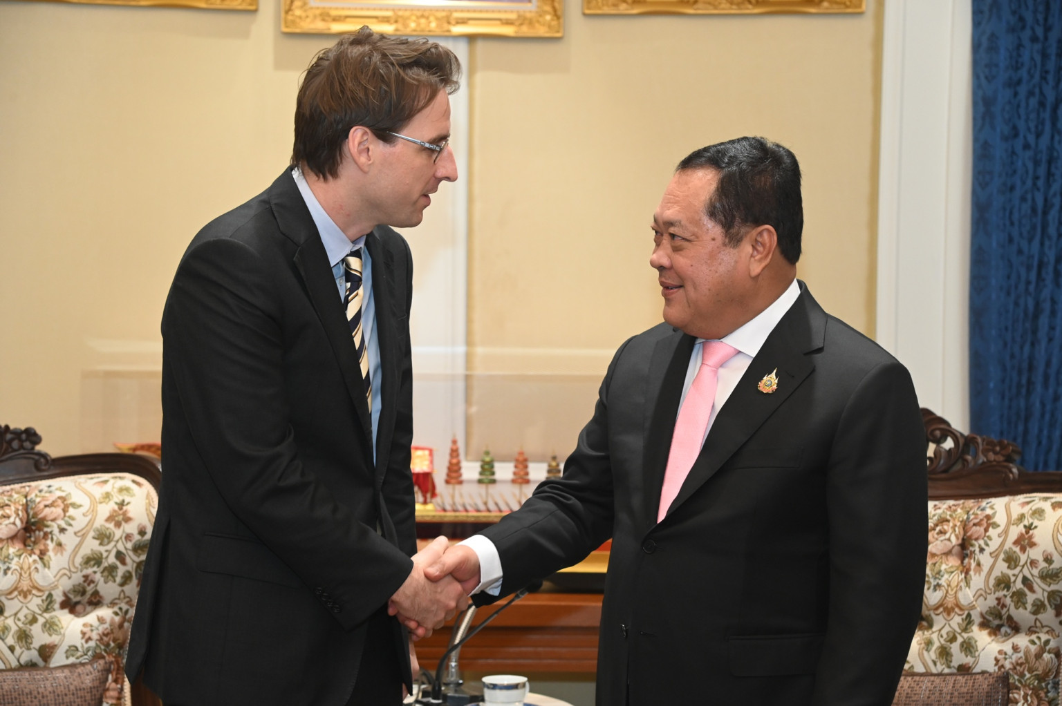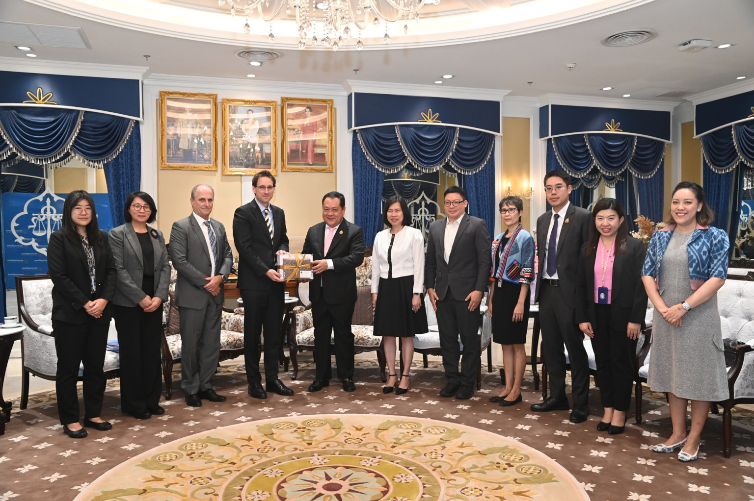 เมื่อวันที่ 15 กรกฎาคม 2568 พันตำรวจเอก ทวี สอดส่อง รัฐมนตรีว่าการกระทรวงยุติธรรม ให้การต้อนรับ นายเบเนดิกต์ ฮอฟมันน์ (Mr. Benedikt Hofmann) รักษาการผู้แทนสำนักงานว่าด้วยยาเสพติดและอาชญากรรมแห่งสหประชาชาติ ประจำภูมิภาคเอเชียตะวันออกเฉียงใต้ และแปซิฟิก (United Nations Office on Drugs and Crime Regional Representative ad interim for Southeast Asia and the Pacific) พร้อมคณะ เพื่อแลกเปลี่ยนข้อคิดเห็นและหารือแนวทางความร่วมมือในประเด็นสำคัญเกี่ยวกับการแก้ไขปัญหายาเสพติดในภูมิภาค โดยมี นางยศวันต์ บริบูรณ์ธนา รองอธิบดีกรมคุมประพฤติ, ผู้ช่วยศาสตราจารย์ วรวีร์ ไวยวุฒิ รองผู้อำนวยการสถาบันนิติวิทยาศาสตร์ และนายรวิศ สอดส่อง หัวหน้าคณะทำงานรัฐมนตรีว่าการกระทรวงยุติธรรม พร้อมด้วยเจ้าหน้าที่จาก สำนักงานคณะกรรมการป้องกันและปราบปรามยาเสพติด และกองการต่างประเทศ สำนักงานปลัดกระทรวงยุติธรรม เข้าร่วม ณ ห้องรับรองกระทรวงยุติธรรม ชั้น 11