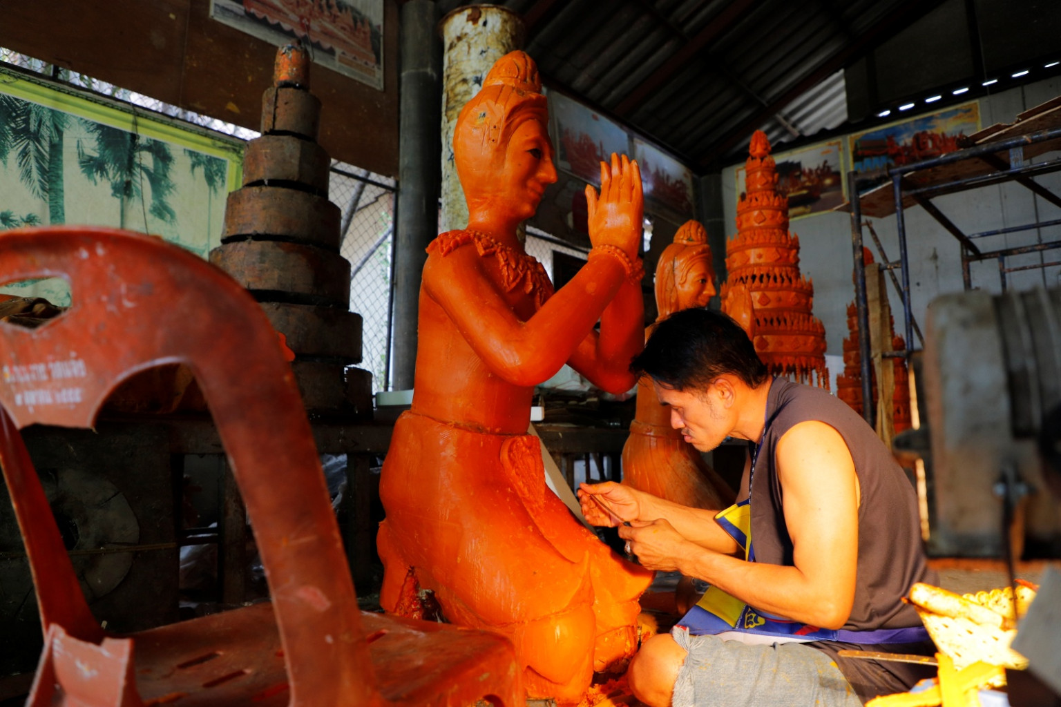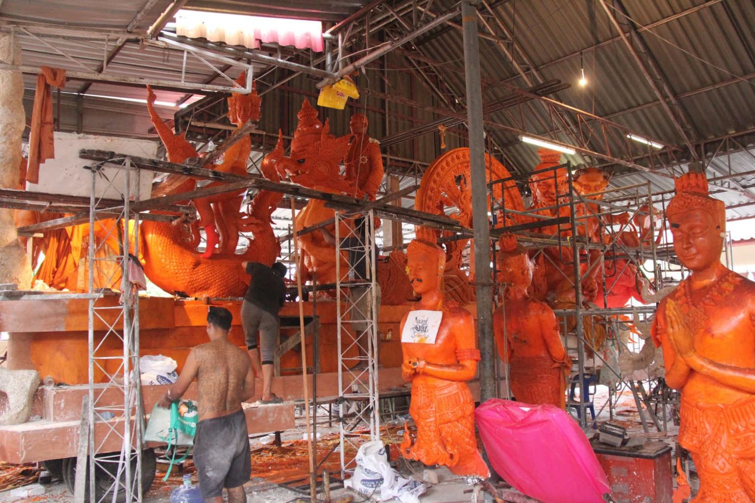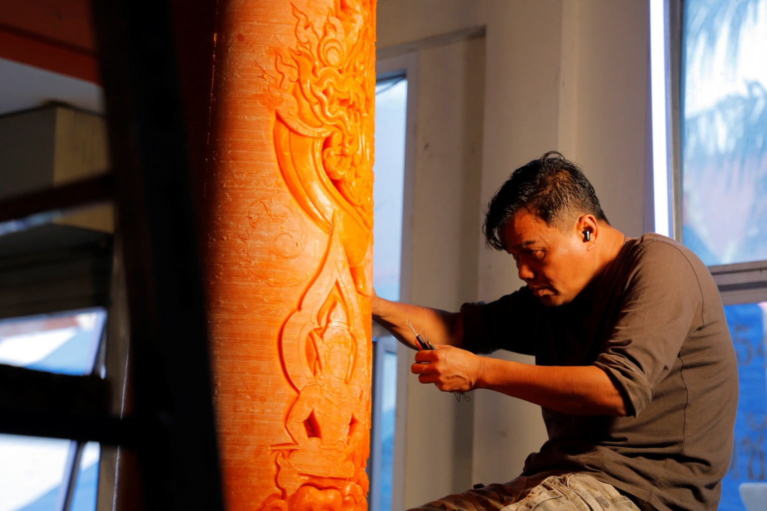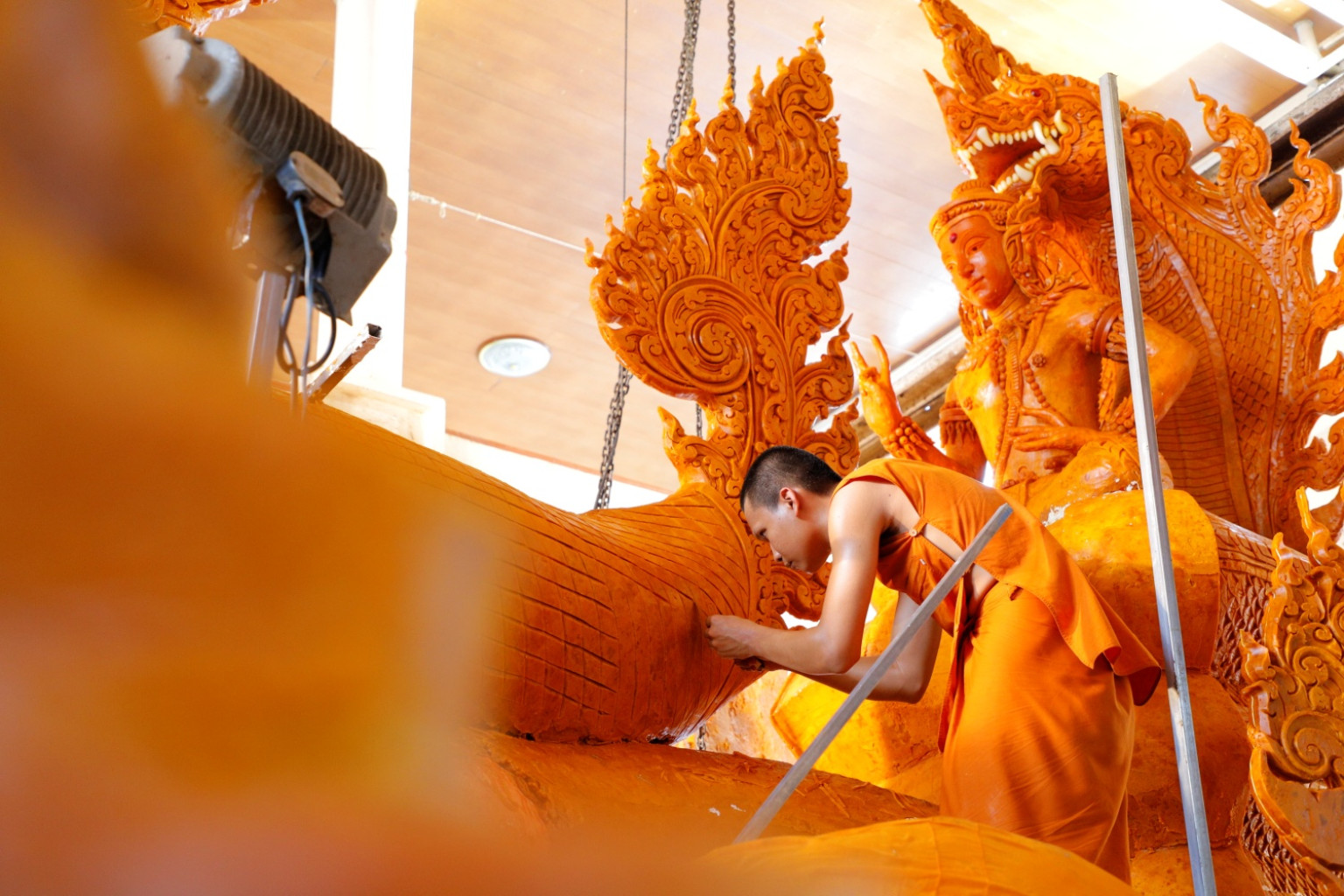 พระ-เณรและช่างฝีมือท้องถิ่นเร่งแกะสลักเทียนพรรษาด้าน'วัดกลาง'ลั่นครองแชมป์สมัยที่5