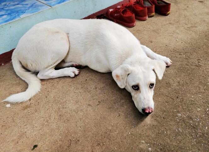 โพสต์ดังกล่าวระบุว่า “หาบ้านให้น้องหมาค่ะ น้องโดนลิงกัดตลอดเลยอยากหาบ้านให้ ข้อความจากคนใจดีที่ไปเจอน้องมาค่ะ มีเรื่องรบกวนขอความอนุเคราะห์คุณหมอช่วยหาบ้านให้น้องหมาพันธุ์ลาบราดอร์ สีขาว อายุน่าจะไม่ถึง 1 ปี หน่อยค่ะ พอดีพี่สาวสอนอยู่ที่โรงเรียนถ้ำปลาวิทยาคมส่งมาให้ค่ะ
