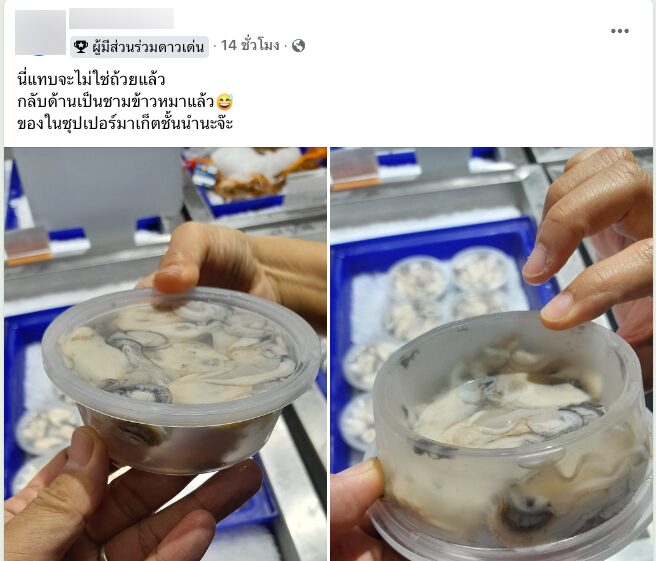 ล่าสุด กลุ่มพวกเราคือผู้บริโภค ได้มีการแชร์เคสที่รู้สึกว่า เป็นสิ่งที่ไม่ได้รับความเป็นธรรม โดยเป็นภาพของถ้วยบรรจุหอยนางรม ซึ่งด้านบนเหมือนจะมีหอยแน่นเต็มถ้วย แต่เมื่อพลิกดูข้างใต้ ก็พบว่า ก้นถ้วยถูกออกแบบมาให้เว้าลึกเข้าไป จึงมีหอยอยู่เพียงไม่กี่ตัวเท่านั้น