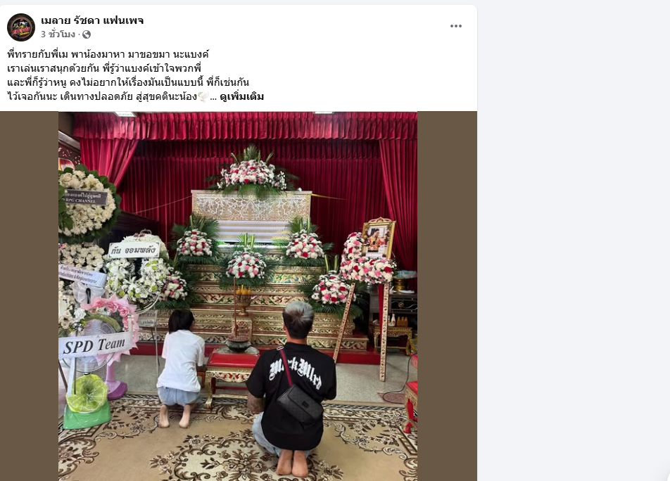 ล่าสุดเพจเมลาย รัชดา แฟนเพจ โพสต์ภาพ เมลาย พาลูกไปกราบศพของ แบงค์ เลสเตอร์ ที่วัดออเงิน ย่านสายไหม กทม. พร้อมระบุว่า
