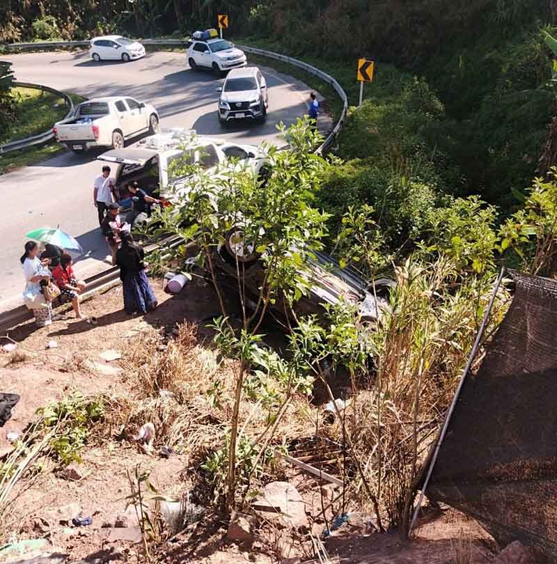 ระทึก! เก๋งกลิ้งตกเขา ภูทับเบิก พลิกหลายตลบ ขณะขึ้นเนินสูงไปรีสอร์ต เจ็บ 4