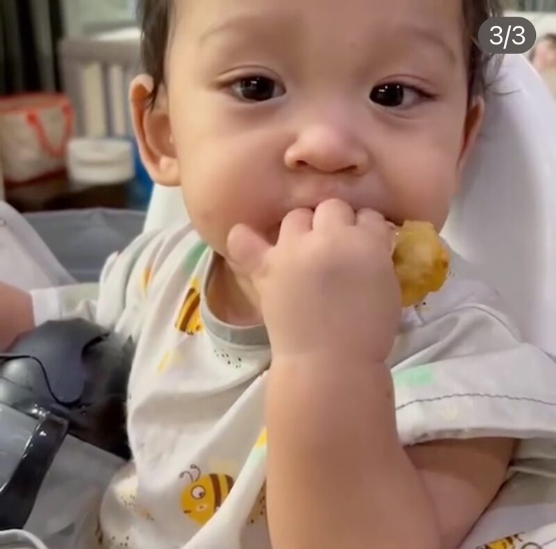 "ตอนนี้สูง 70 น้ำหนัก 9 กิโล เกินเกณฑ์นิดนึงครับ ก็ตั้งใจขุน เพราะทำกับข้าวกินเองด้วย ทำกับข้าวให้ลูก แต่ครบ 5 หมู่นะ ไม่ต้องห่วงนะครับ ไม่มีดราม่า (หัวเราะ) ผมอยู่กลุ่มแม่และเด็กครับ ผมทำเสร็จปุ๊บถ่ายรูปลงกลุ่มเลย แบบนี้สารอาหารครบมั้ยครับ มีโปรตีน ผัก ผลไม้ วิตามินเสริม น้ำมันตับปลา ครบไม่ต้องห่วง"